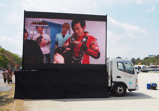 全天候防水仕様の大型映像フルカラーLEDビジョンを搭載した野外での